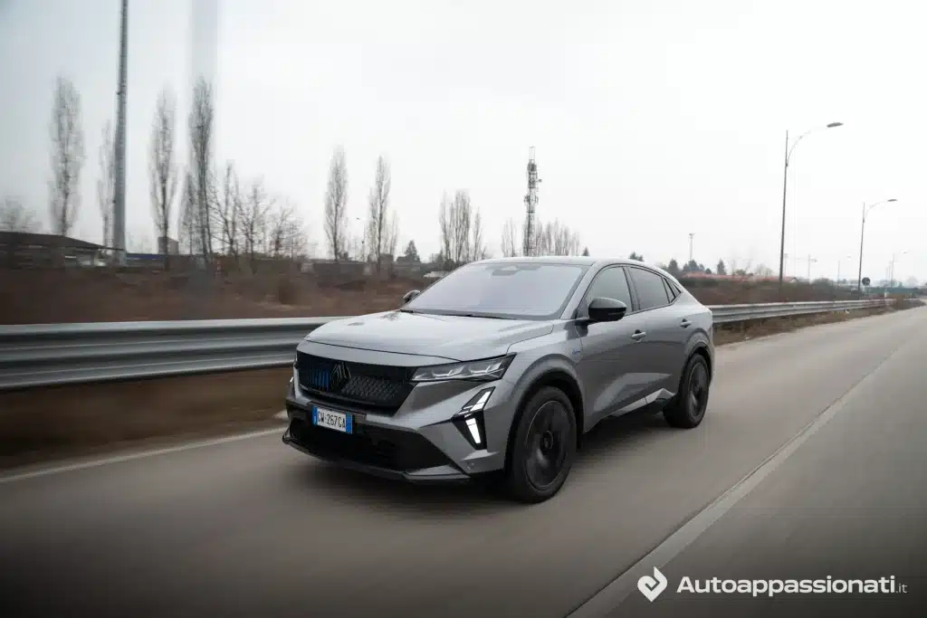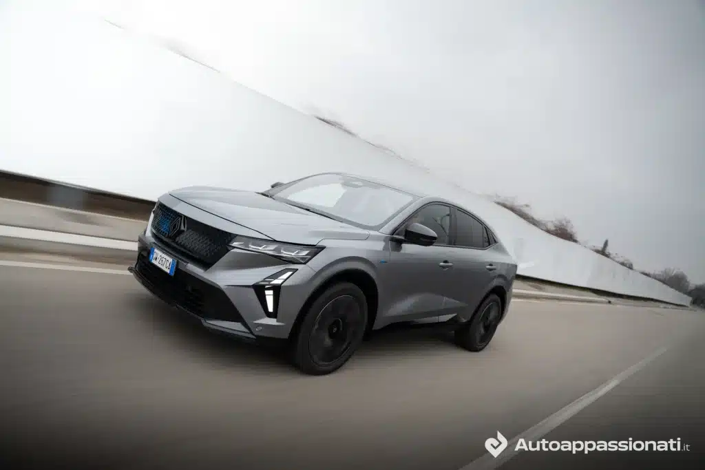 I principali vincoli di questo sistema motore diventano evidenti quando si preme sull'acceleratore oltre un certo punto. Se ci si aspettano le migliori performance dal sistema E-Tech, il cambio MultiMode sembra un po' incerto. Durante una conduzione pacifica, il cambio cambia i rapporti senza quasi dare nell'occhio, grazie principalmente al motore elettrico che compensa la mancanza di potenza del propulsore a combustione interna. Quando ci si rivolge alle migliori performance, si nota distintamente il "passaggio" indotto dalla mutazione della marcia. Pecca solo il fatto che, nonostante ottime prestazioni, una certa moderazione nel rollio e una buona tenuta della strada, questo Rafale sia anche gradevole da prendere nelle curve, mostrandosi convincente per la sua agilità e stabilità.